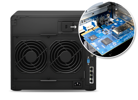 除了內建的四個 Gigabit 網絡埠之外,DS3615xs 內建一個 PCI Express 3.0 x8 插槽來安裝 10GbE 的網絡適配器 (NIC),藉以提升網絡聯(lián)機帶寬,為你存儲系統(tǒng)上需要處理大量數(shù)據(jù)的應用程序提供優(yōu)越效能。此外,DS3615xs 內建每秒 6Gb SATA III 介面支持,可將 SSD 的高速傳輸效能完整發(fā)揮,確保系統(tǒng)處理多項任務時,仍維持良好的傳輸效率。