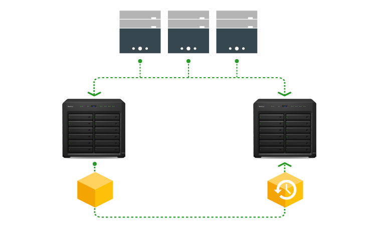 對于所有企業(yè)而言,提供不中斷的服務是非常重要的目標。DS3615xs 提供 Synology High Availability (SHA) 技術,其連接了主動與被動服務器,前者的所有數(shù)據(jù)皆鏡射至后者,當主動服務器出現(xiàn)錯誤時,被動服務器馬上取而代之。共享文件夾同步可將數(shù)據(jù)實時復制至另一臺遠程的 Synology NAS,在復原時間目標 (Recovery Time Objective, RTO) 內回復企業(yè)因服務器故障而中斷的服務。此外,通過多網絡端口鏈接,DS3615xs 在單一網絡功能異常時,也能提供備援機制。