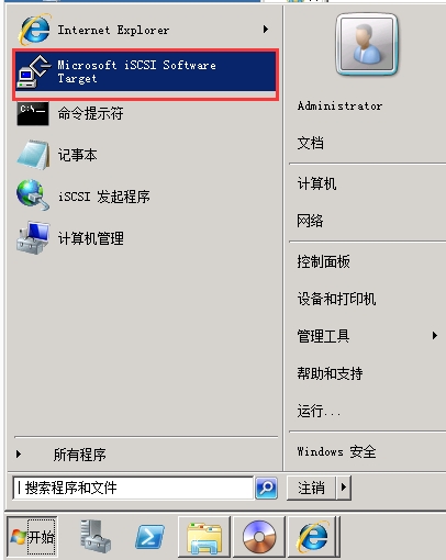 1. 點(diǎn)擊開(kāi)始,找到Microsoft iSCSI Software Target,并打開(kāi)