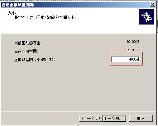 15. 輸入虛擬磁盤(pán)容量大小,然后下一步