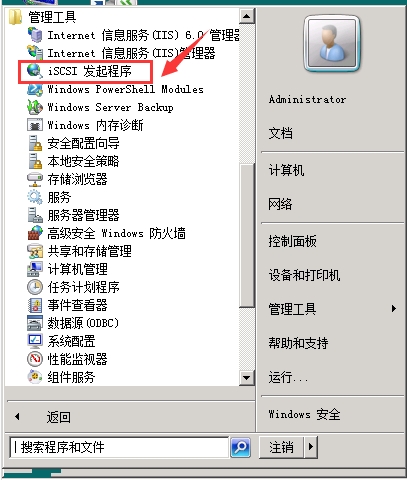 1. 在開(kāi)始>管理工具中,找到"ISCSI發(fā)起程序",如下圖: